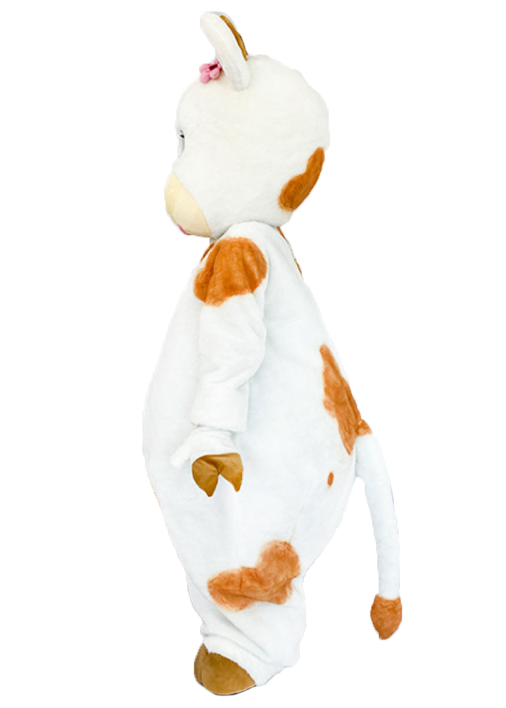 У чарівній долині, де кожне створіння мов зі сторінок казки, ростова лялька корова Лі-лі є втіленням милості та ніжності. Її білесенький комбінезон, прикрашений м'якими коричневими плямами, створює відчуття затишку та доброзичливості. Поролонова конструкція голови, обтягнута плюшевим хутром, з мереживними очима та додатковими вентиляційними отворами в носі, забезпечує акторові чудову видимість та комфорт. Об'ємний жилет, пара м'яких рукавичок та тепле взуття на поролоновій конструкції доповнюють цей образ, роблячи його не лише прекрасним, але й практичним. Корівка Лі-лі ідеально підходить для анімаційних програм та святкових заходів, принеся радість та веселу атмосферу на будь-яке збирання.