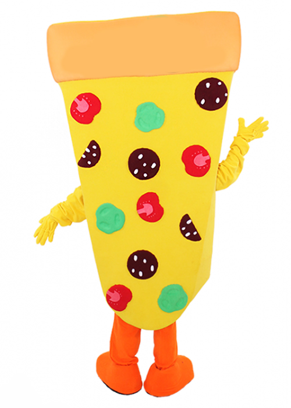 Ростовий костюм Піца — це смачний та оригінальний образ для аніматора! Поролоновий корпус, прикрашений повнокольоровим друком та об'ємними декоративними елементами, створює форму апетитної піци. Кофта, штани, рукавички та взуття доповнюють образ. Цей костюм стане забавним акцентом на святах, дитячих вечірках, зробить ваш бренд впізнаваним, піднімаючи настрій та викликаючи посмішки у всіх гостей!
