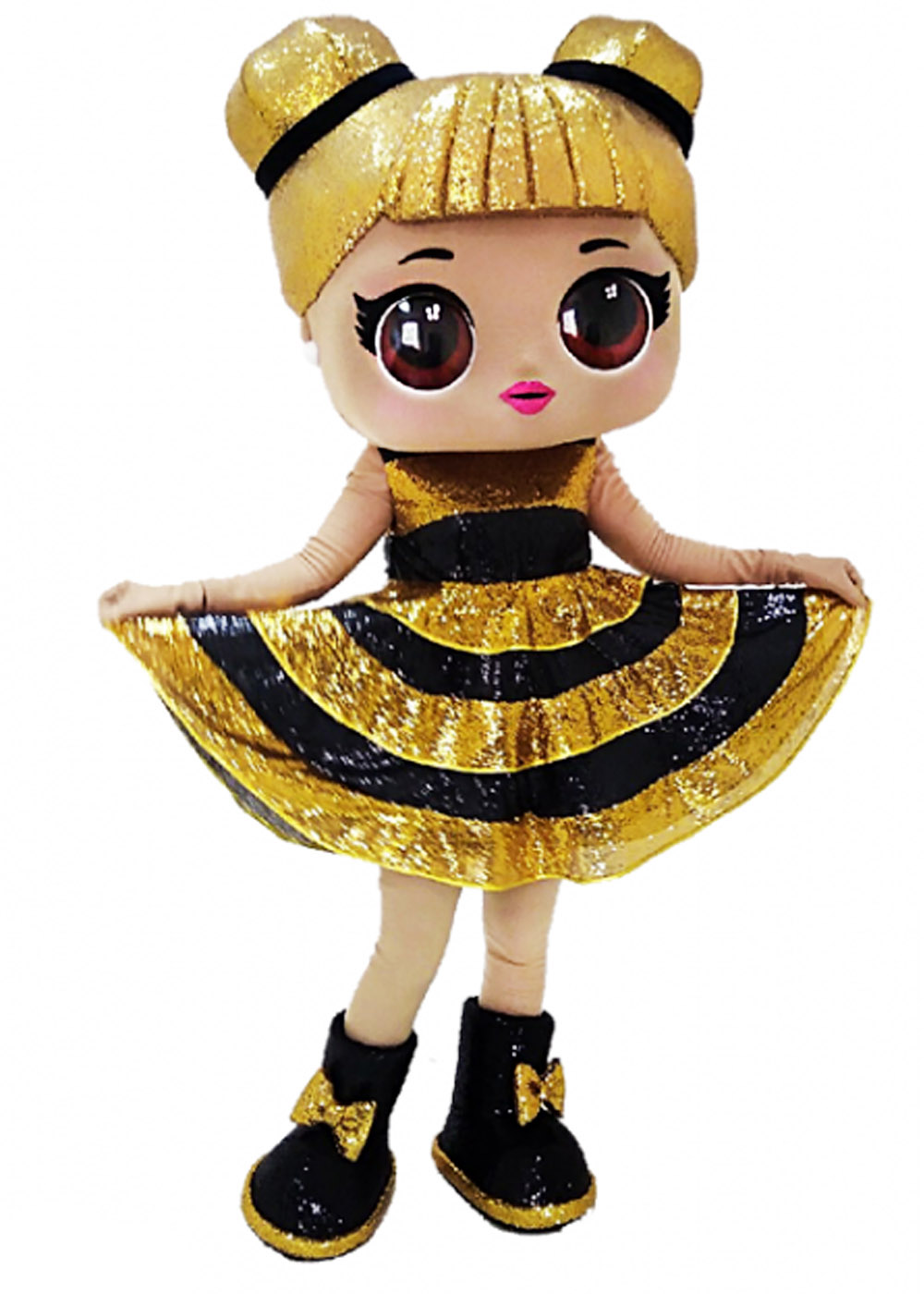 Ростова лялька ЛОЛ Бджілка - втілення милоти та яскравості. Голова костюма, створена на поролоновій основі, вкритою флісом. Очі виконані з сітчастого матеріалу, забезпечуючи яскравість та виразність погляду, а вентиляційний отвір у ділянці рота для комфорту аніматора. Тіло ляльки складається з яскравої спідниці, кофти та лосин. Костюм доповнюють рукавички та взуття на гумовій підошві, забезпечуючи комфорт та безпеку під час виступу.