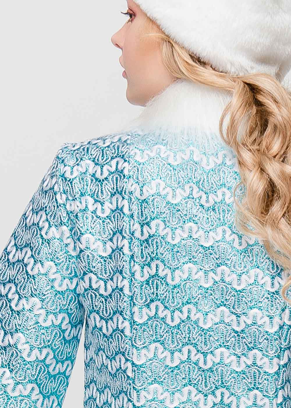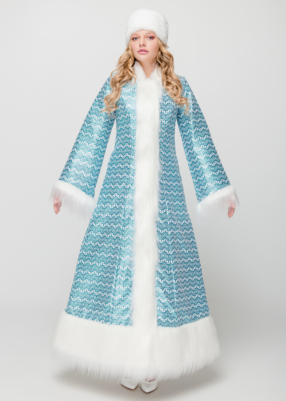 Костюм Снігуроньки «Хелен» - ідеальний вибір для тих, хто хоче створити незабутній святковий образ. Шуба виконана з трикотажної тканини з елегантним малюнком, що додає шарму та чарівності. Штучне хутро використовується для обробки передньої планки, рукавів і низу шуби, надаючи їй розкішного вигляду. Шапка виконана в єдиному стилі з шубкою, прикрашаючи образ і додаючи затишку. Стегана підкладка на синтепоні забезпечує тепло і комфорт, зберігаючи форму шуби. Цей костюм ідеально підходить для новорічних ранків, корпоративних заходів і домашніх свят. Аксесуари продаються окремо: унти, перуки, болеро, рукавички, карнавальні костюми.