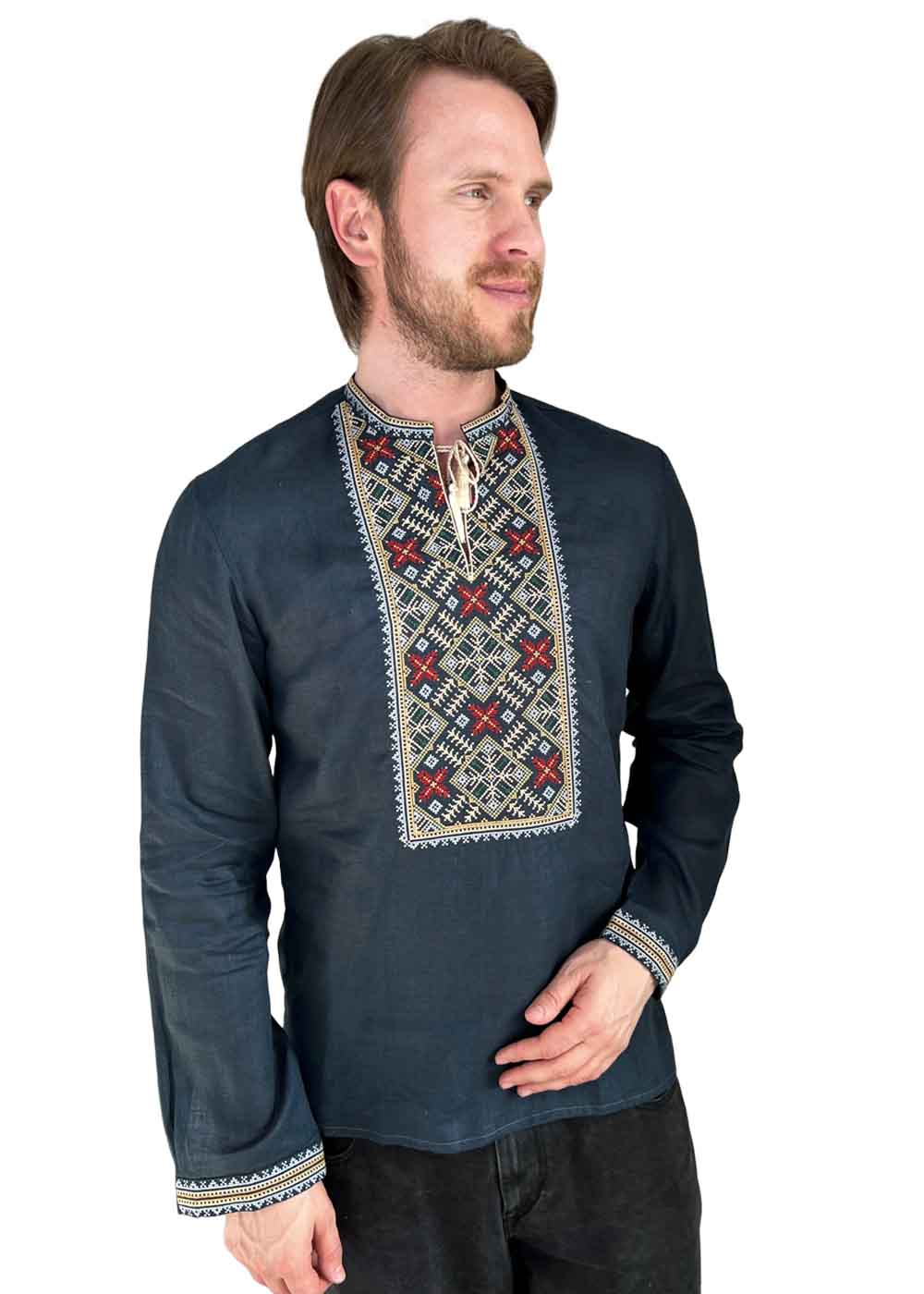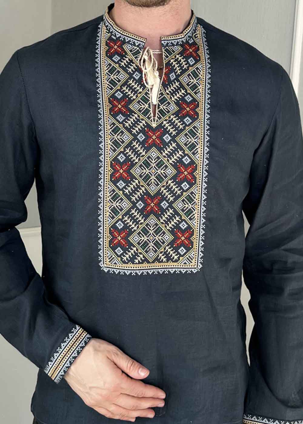 Чоловіча вишиванка Святослав продовжує колекцію українського вишитого одягу. Вишиванка чоловіча виготовлена з натуральної тканини - льон.