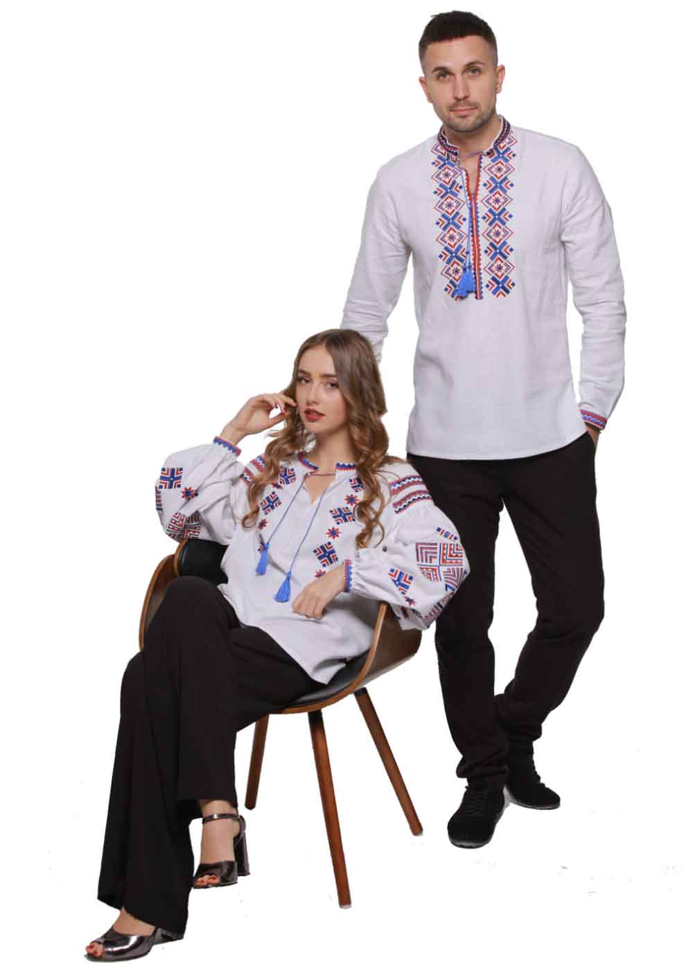 Вишиванка сімейна Ромби Косач – цей комплект складається з 2-х вишитих сорочок для нього та для неї.