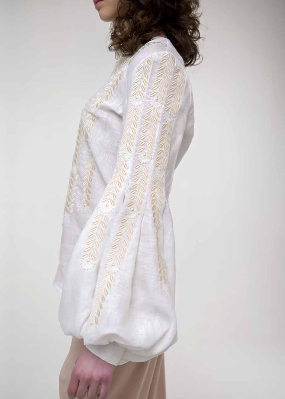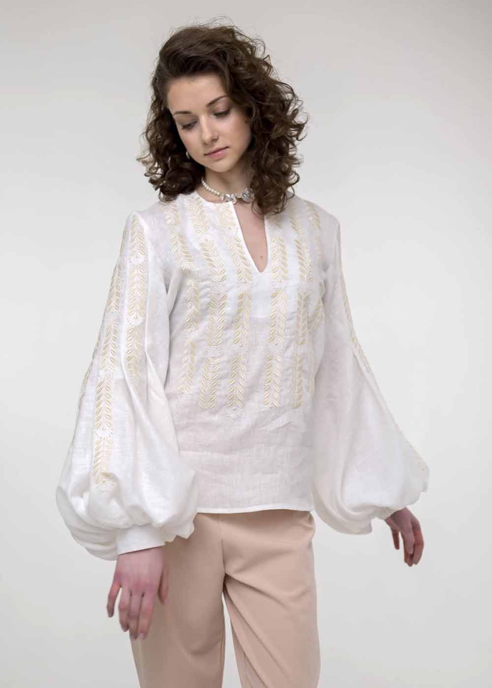 Вышитая блуза Струмивка белая продолжает коллекцию Женские вышиванки. Модель приталенного кроя.