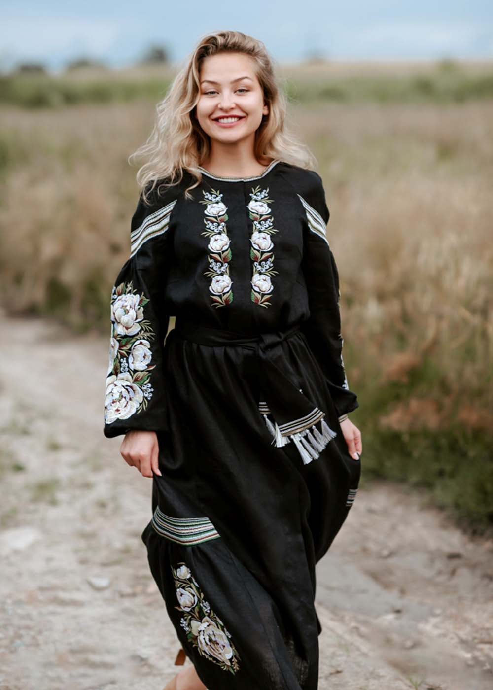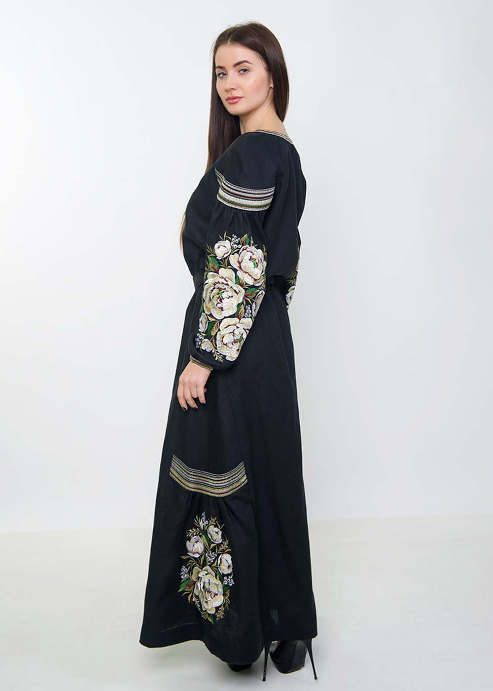 Вышитое платье черное длинное продолжает коллекцию Украинской вышитой одежды. Платье вышитое выполнено из натуральной ткани - лён.