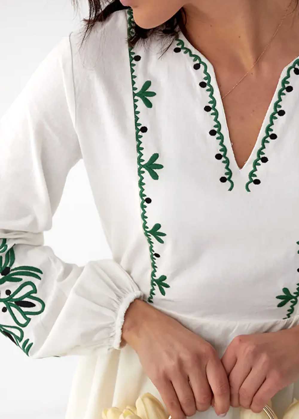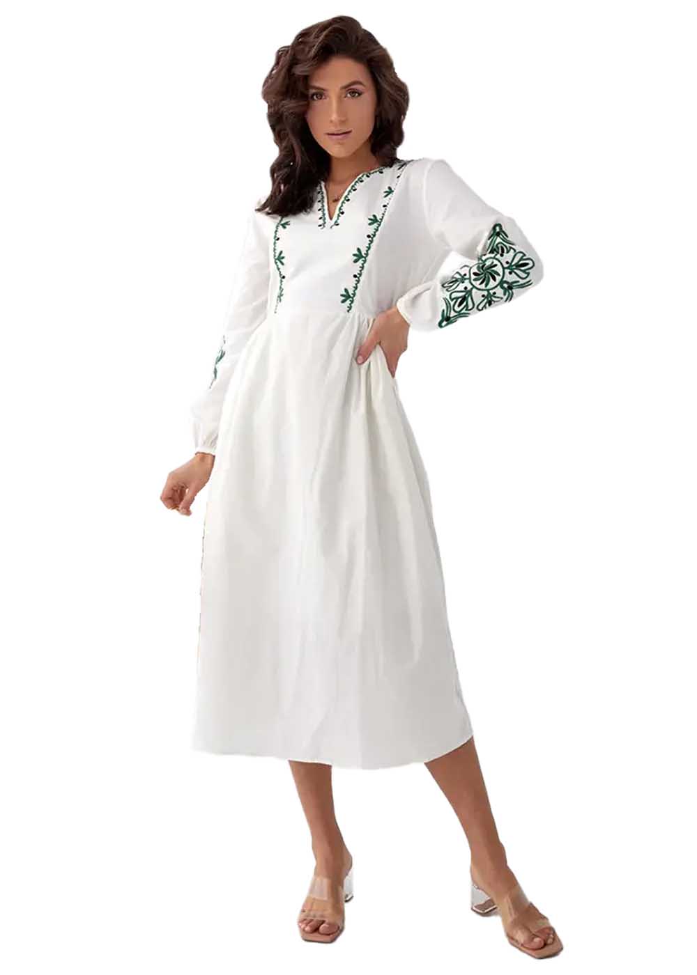 Вышитое платье Княгиня - великолепное сочетание традиционного искусства и современной элегантности. Белоснежное платье украшено изящными орнаментами спереди и на рукавах, создавая уникальный и изысканный образ. Платье Княгиня идеально подойдет для особых случаев, подчеркивая вашу женственность и приверженность украинским культурным традициям.