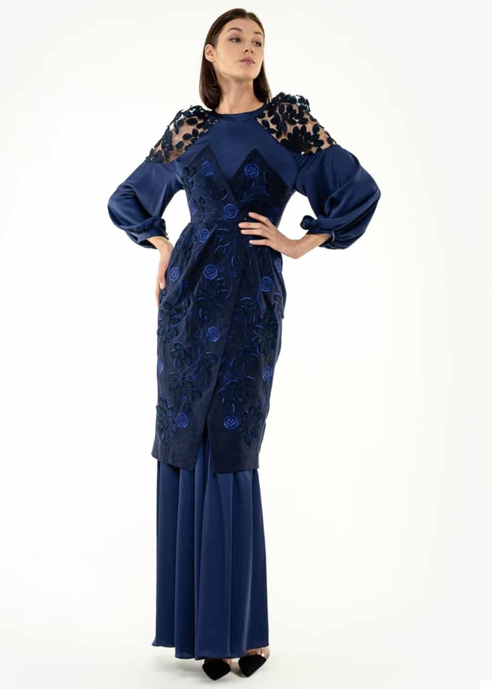 Вышитое платье Наречена выполнена из качественных материалов. Утонченная модель с невероятно красивой вышивкой, объединяет в себе нежный крой платья и геометрическую строгость корсета.