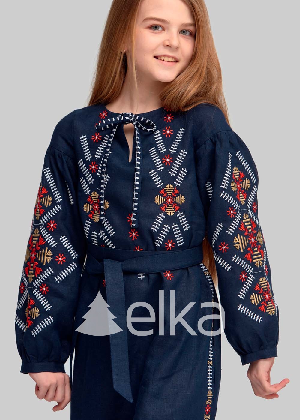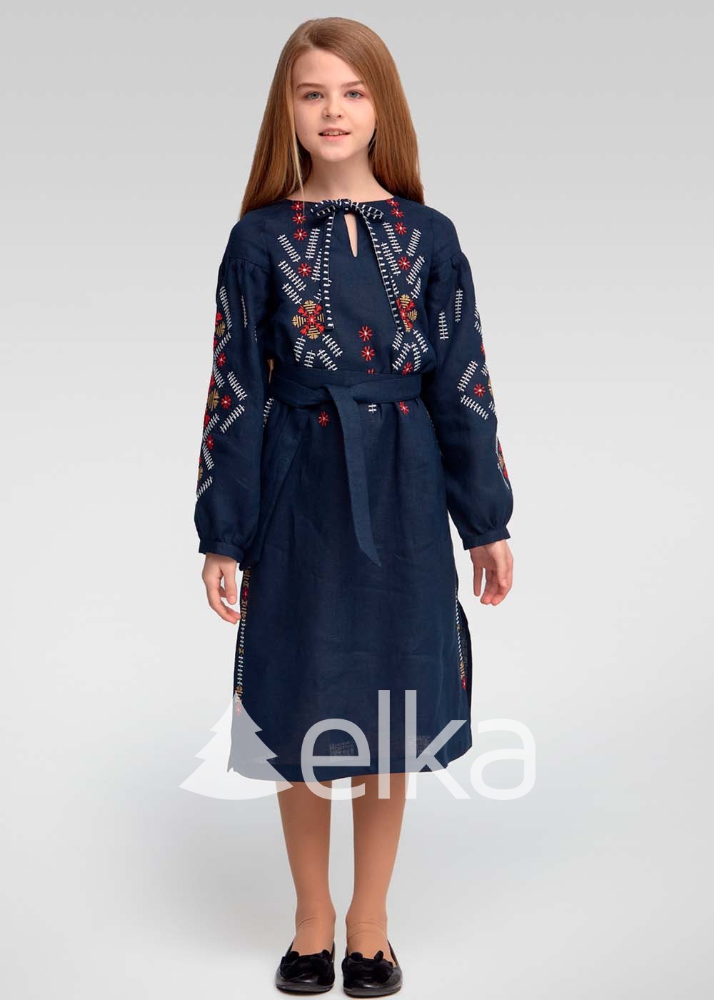 Вышитое платье для девочки синее выполнено из натуральной высококачественной льняной ткани.