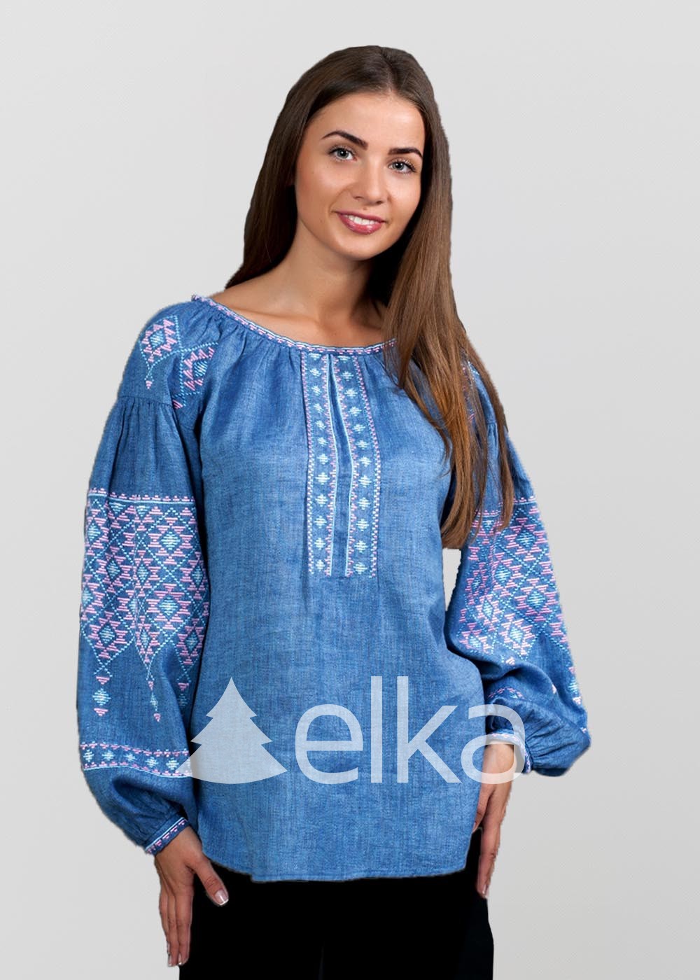 Вышиванка из льна выполнена в современной расцветке “джинс”. Сочетание аутентичной вышивки и необычной цветовой гаммы сразу придаст образу нотки свежести. Колоритный геометрический узор обвивает пышные рукава, элегантный круглый вырез и тонкие манжеты. Вышиванка точно понравится любительницам стильных экспериментов с классическими нарядами.
