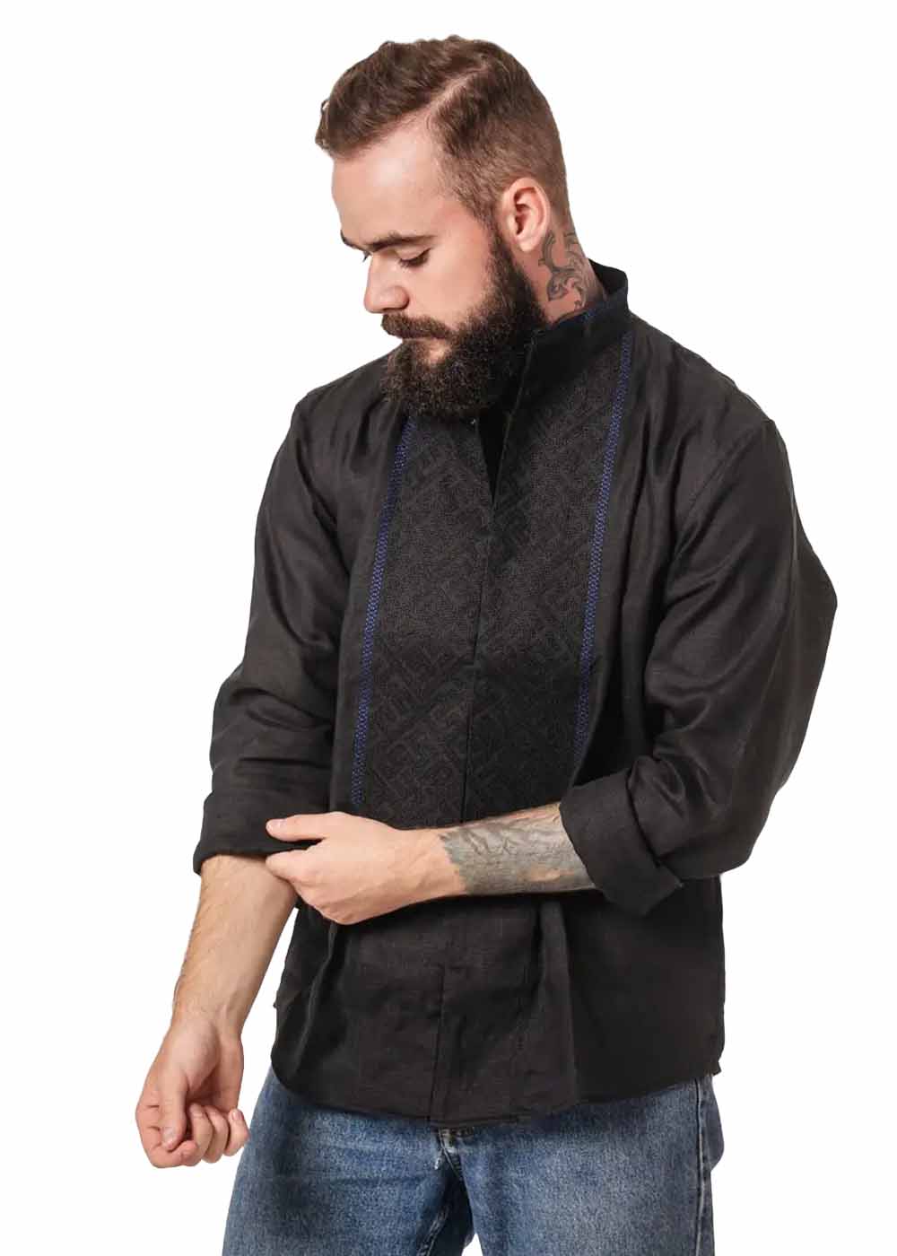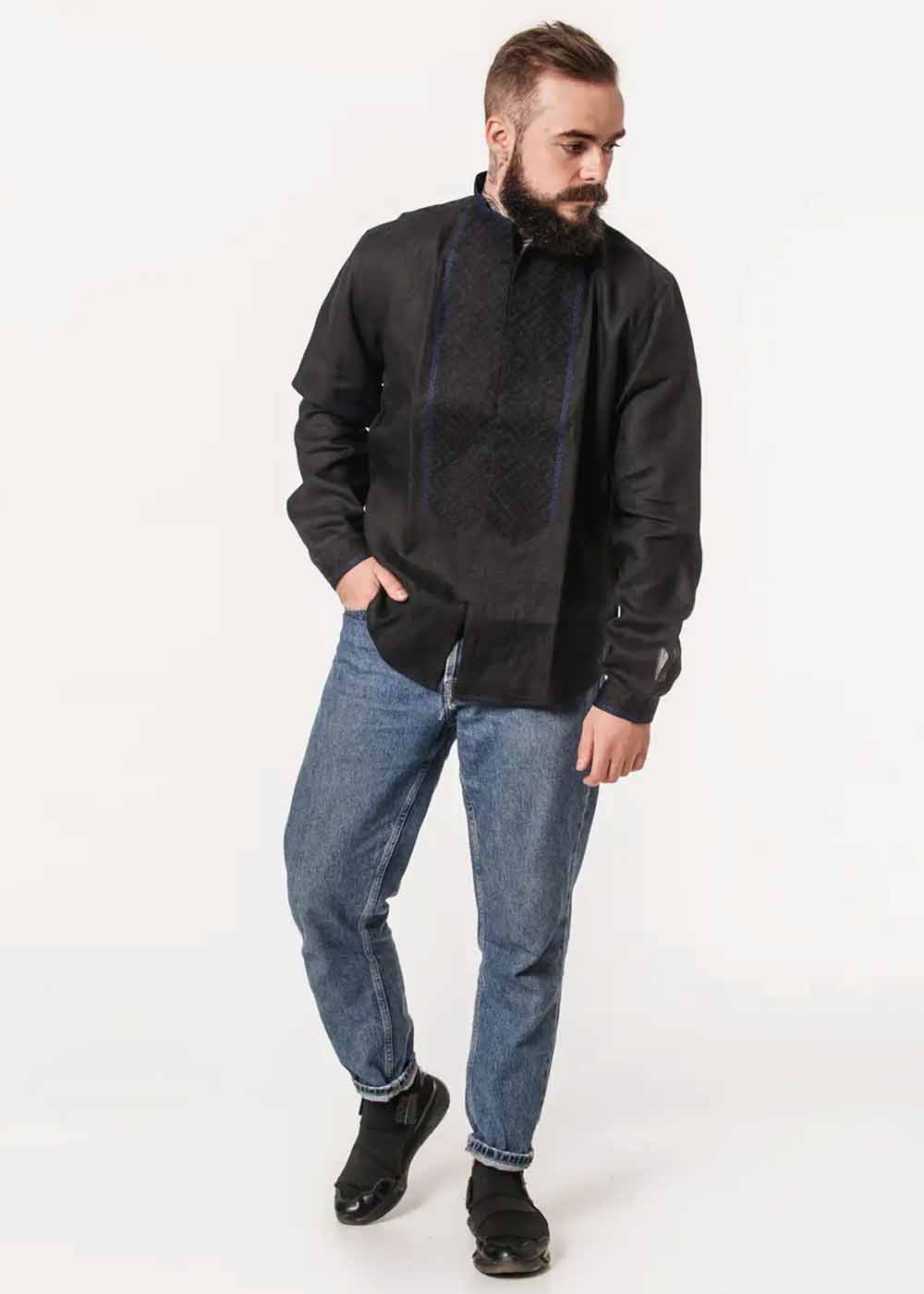Вышиванка мужская Синевир в черном исполнении — это символ изысканного вкуса и неповторимого стиля. Узор, вдохновленный традиционным народным искусством, придает этой рубашке неповторимый вид, подчеркивая индивидуальность своего обладателя.