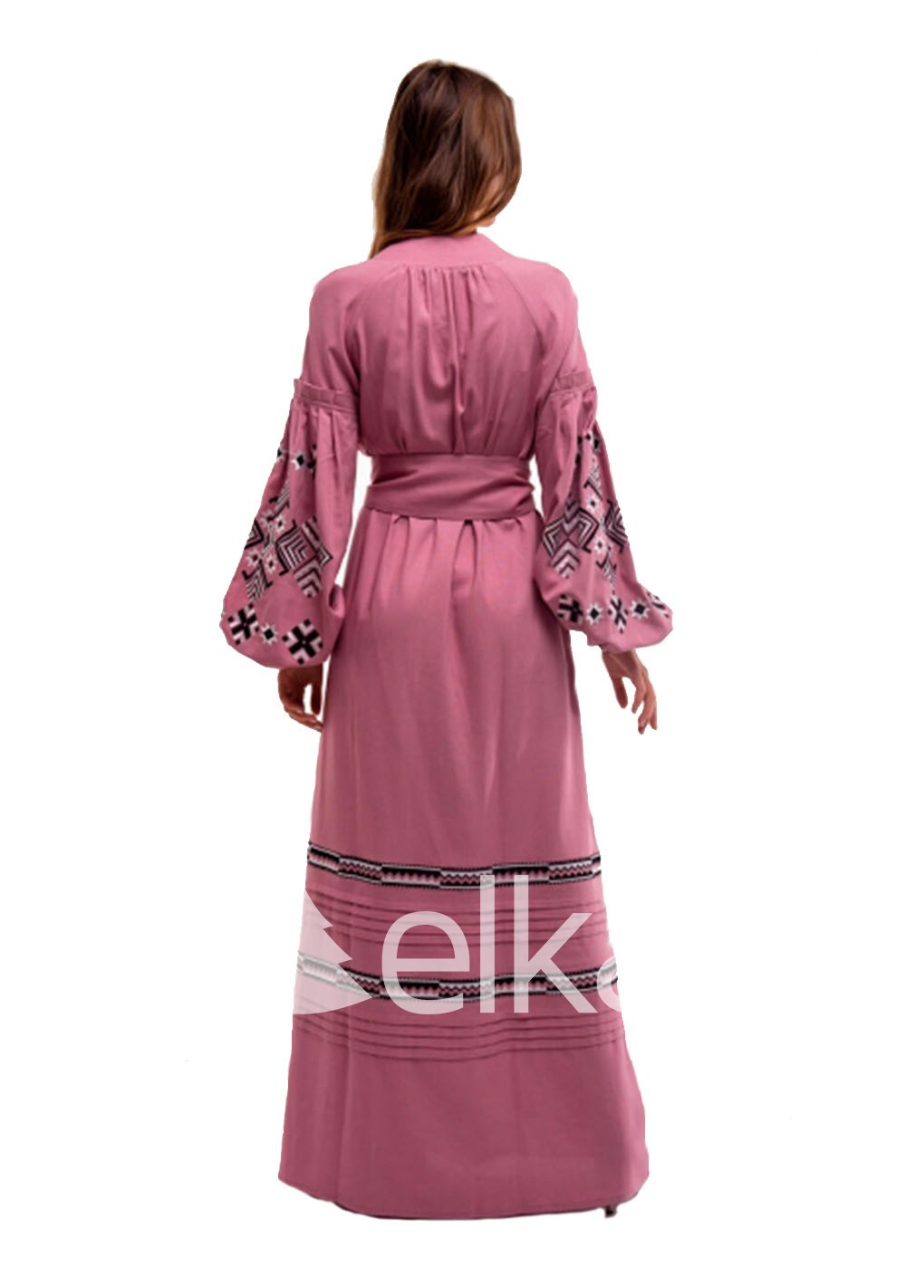 Розовое платье вышиванка Ромбы Косач пошито из льна хорошего качества.