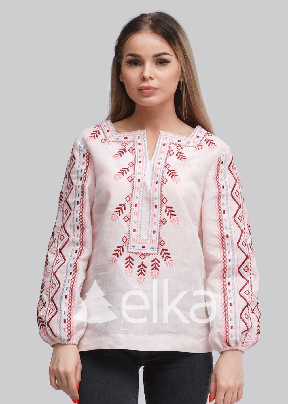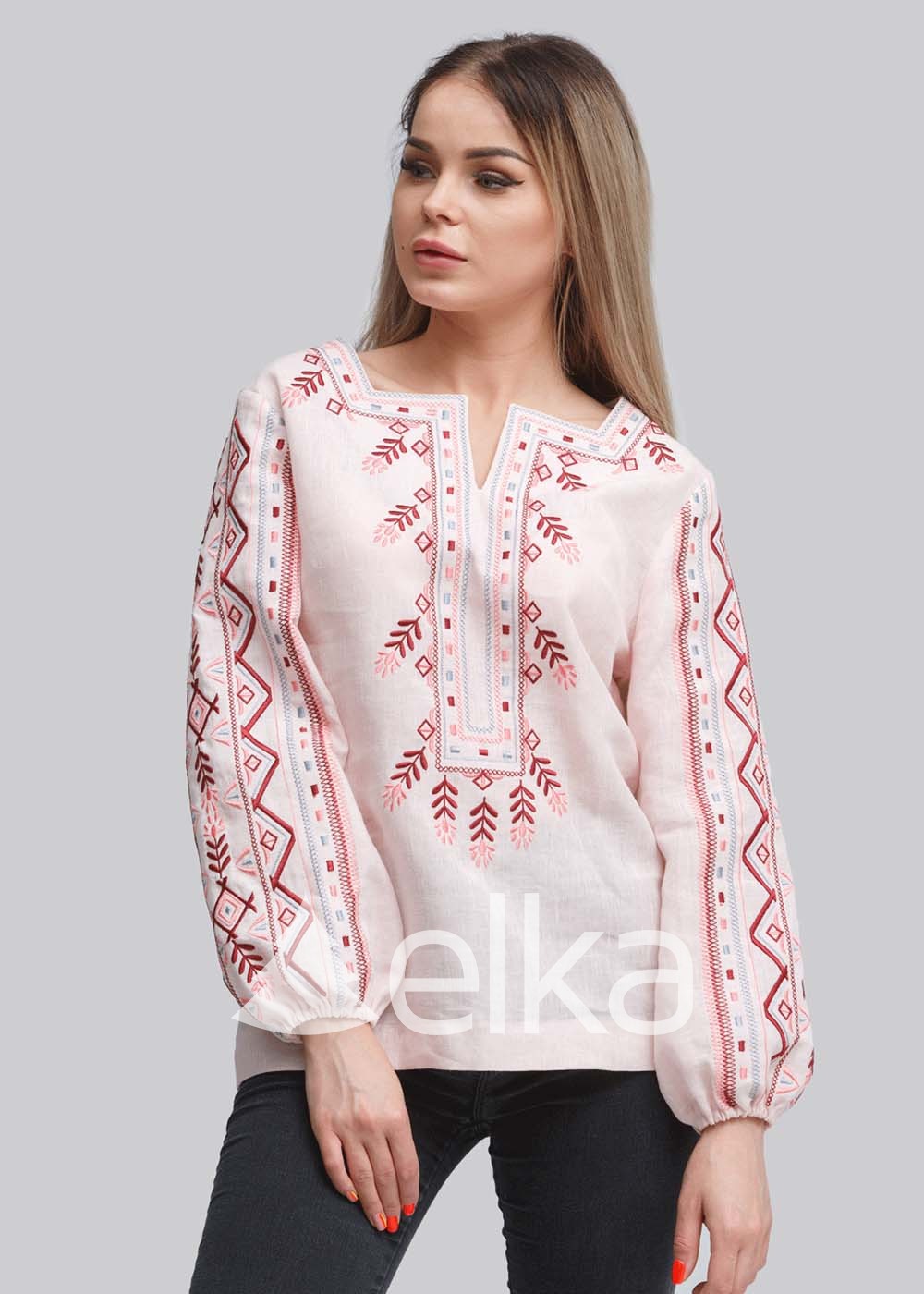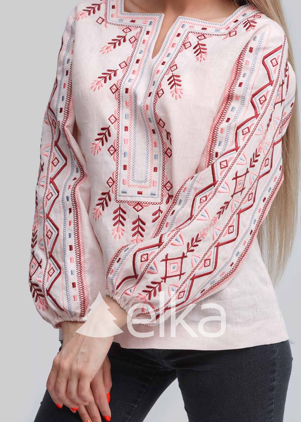 Вышиванка женская розовая выполнена из натуральной льняной ткани.