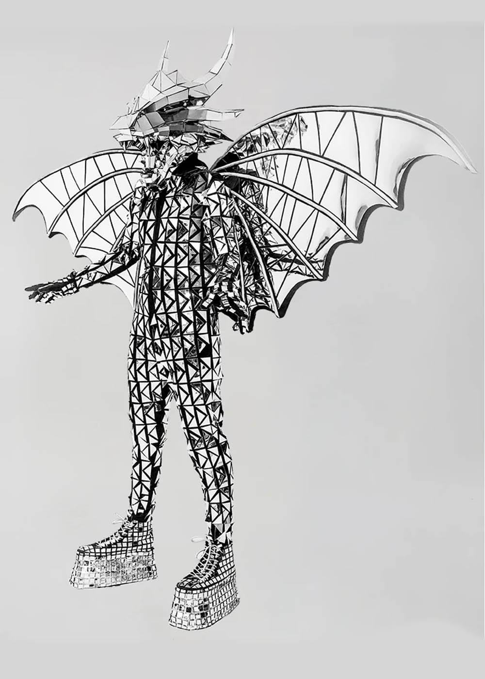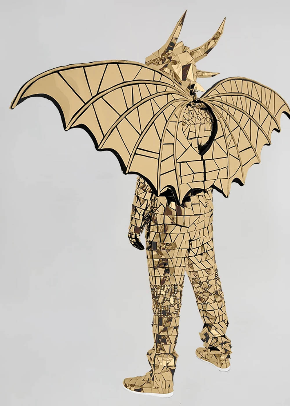 Зеркальный костюм Дракон - воплощение могущества и величия! В комплекте: перчатки, обувь, головной убор, комбинезон и крылья. Изготовлен из особого зеркального материала, этот костюм создает потрясающий эффект блеска и оригинальности.