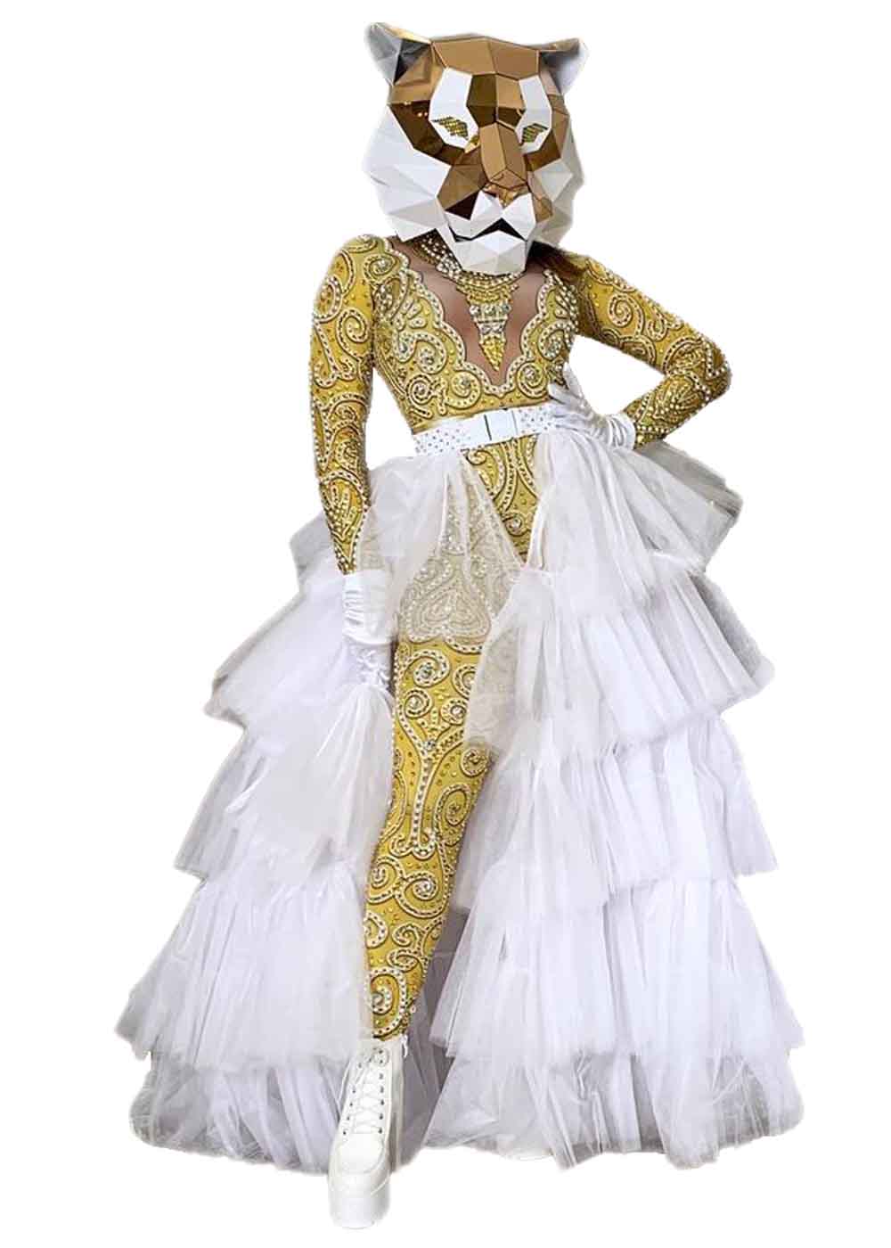 Зеркальный костюм Тигра женский для фотосессий, праздников, аниматоров, хостес, шоу-балетов, пиджеев, артистов. Ручная работа. Костюм прочный и не боится влаги. Комплектацию смотрите в характеристиках.