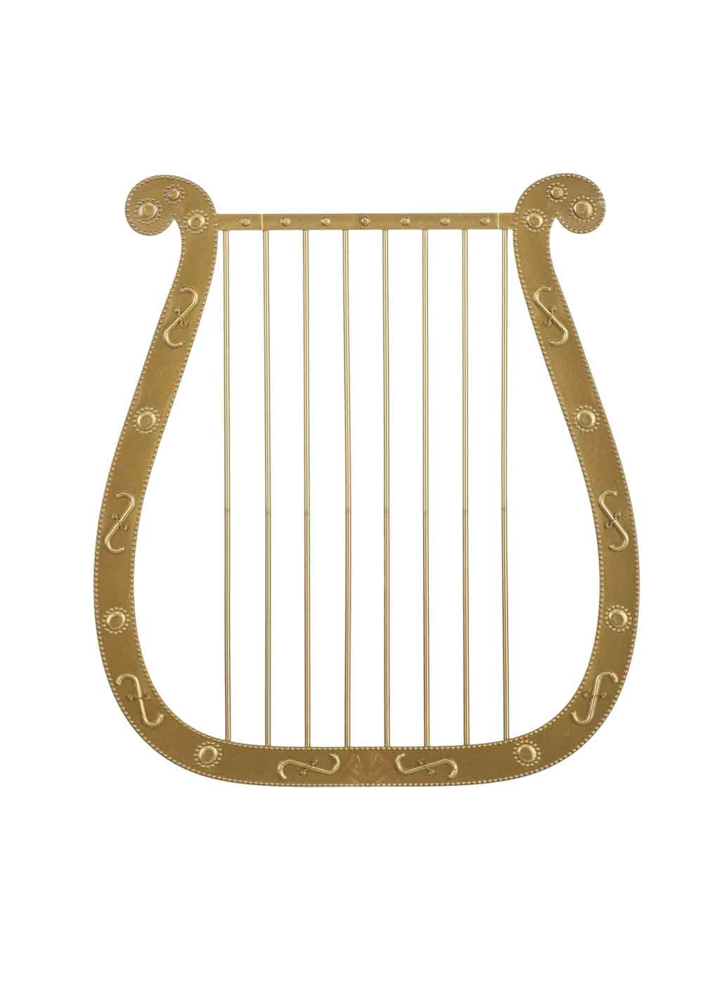 Золотая арфа, это изящный музыкальный инструмент, который добавит шарма и величия вашему образу. Изготовленная из пластика, арфа имеет размеры 21 см в ширину и 23 см в высоту. Ее рамка украшена рельефными завитками, придавая инструменту изысканный вид.